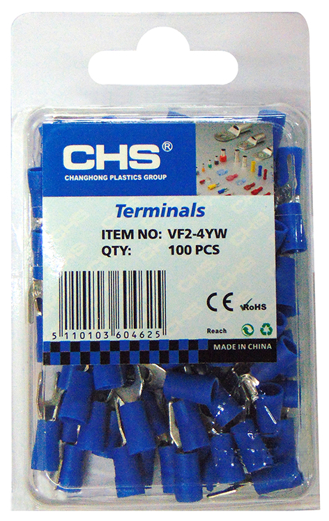 Ακροδέκτης Διχαλωτός με Μόνωση Μπλε 4.3mm (100τμχ) CHS VF2-4YW